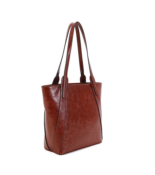 Правоъгълна чанта тип shopper с две дълги дръжки за носене на рамо.