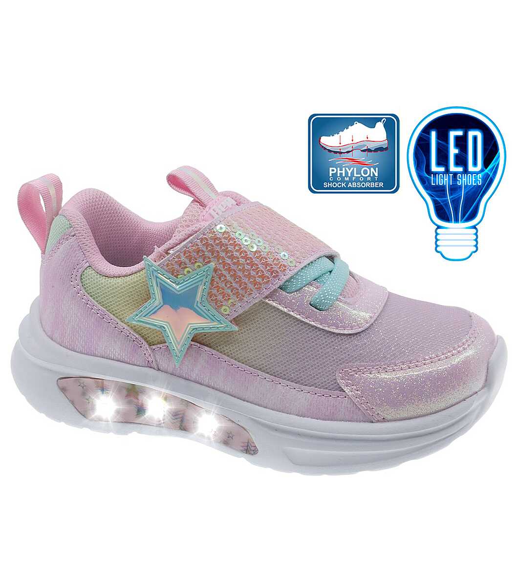 Розови детски маратонки с пайети и LED светлини