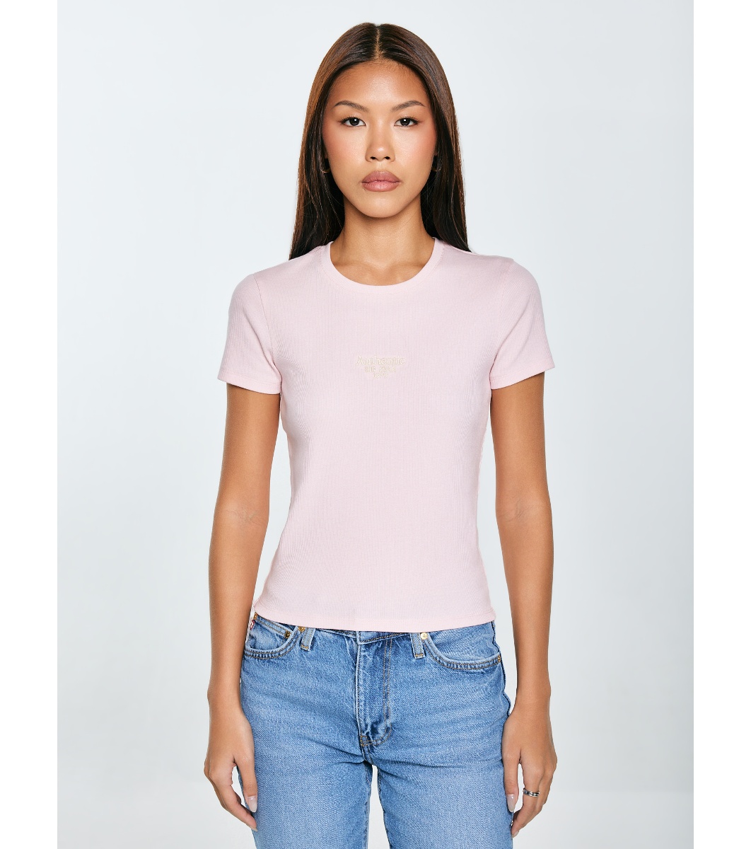 Вталена дамска памучна тениска в цвят пудра Clarsa