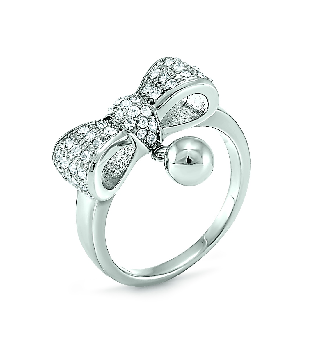 Елегантен дамски пръстен с декоративна панделка, украсена с множество блестящи елементи. Пръстенът има изчистен и стилен дизайн, който добавя изисканост към визията.