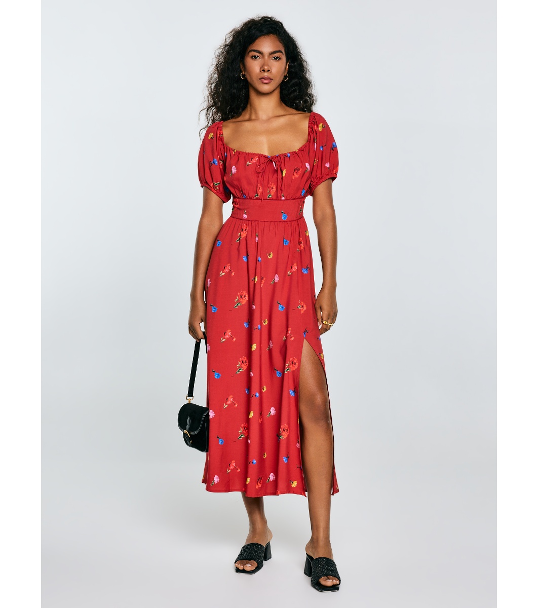 Червена рокля с флорални мотиви Roksi