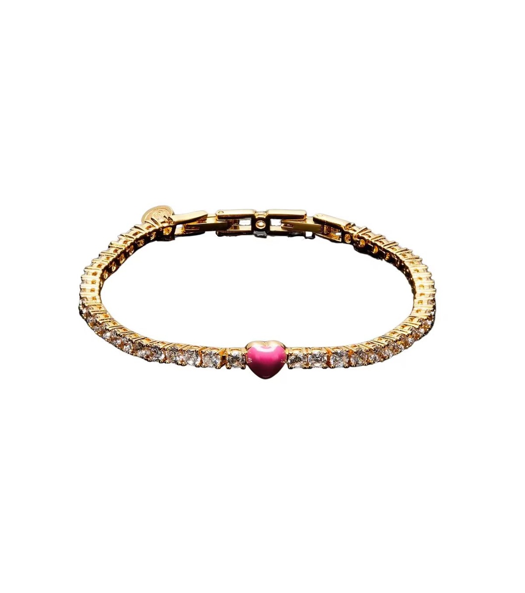 Елегантна дамска гривна с инкрустирани камъни и декоративен елемент във форма на сърце. Затваряне с клипс за сигурност и удобство.